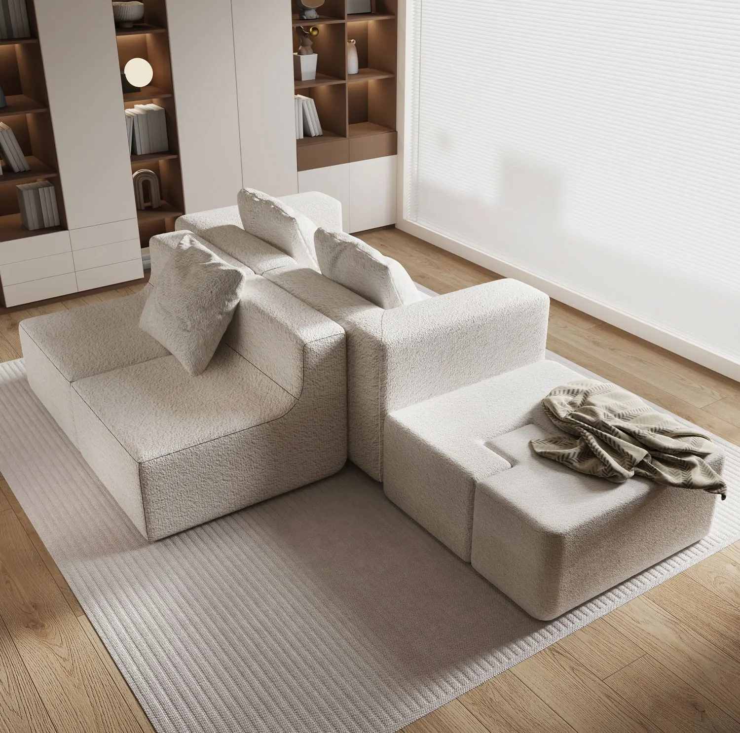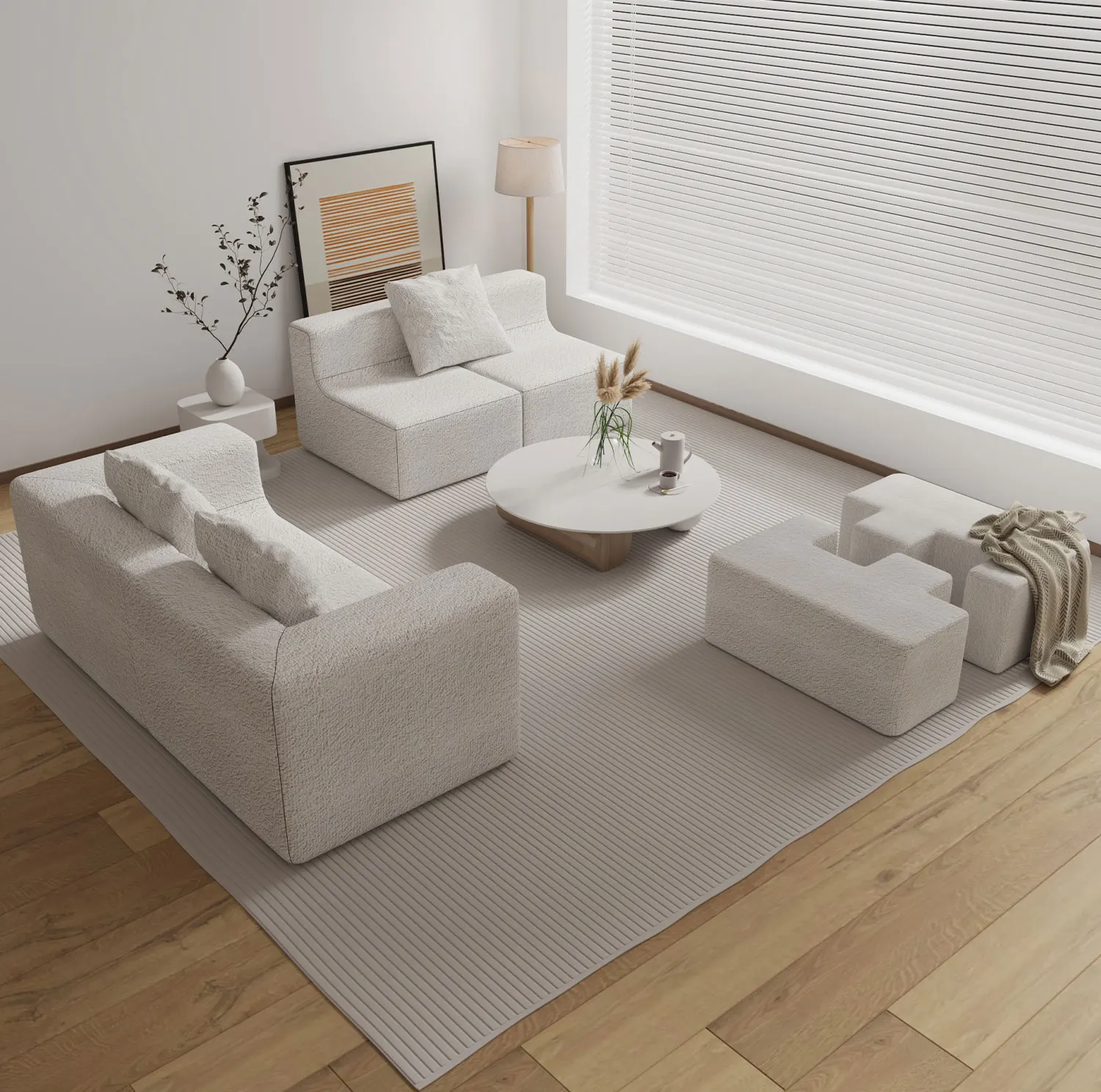 Minimalist 4-Seat Modular Fabric Sofa